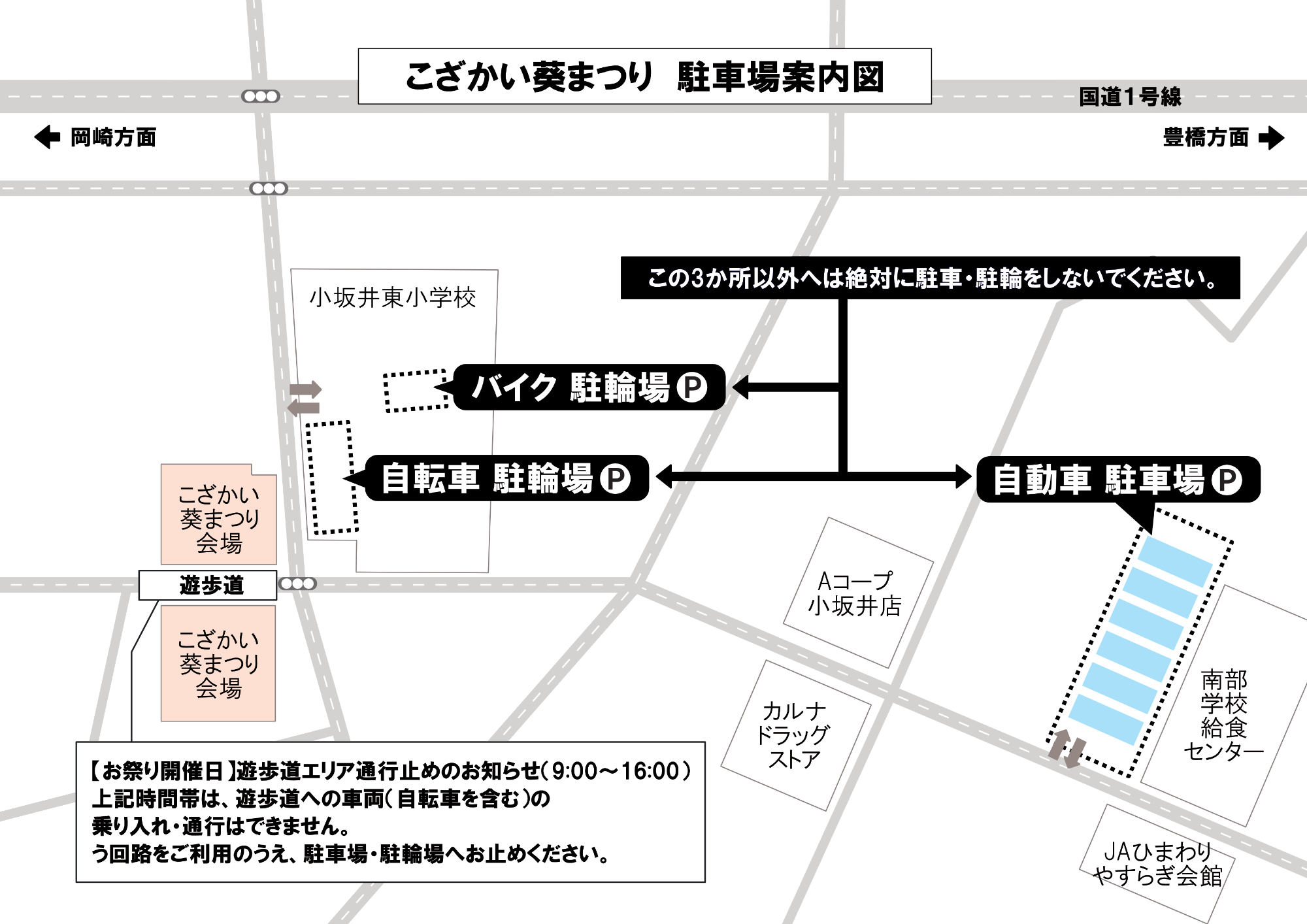 小坂井東小学校運動場(豊川市小坂井町西浦87)へお停めください(徒歩約3分)