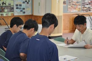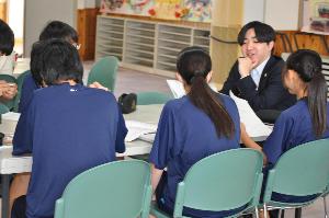 3年生社会科公民分野「現代の民主政治と社会」の学習で弁護士を招き、出前講座が開かれました。グループに分かれて弁護士の仕事について話を聞いたり、質問に答えてもらったりしながら司法について学習しました。