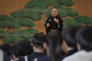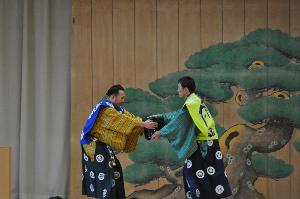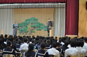 10月23日、学校巡回公演事業として、大蔵流狂言山本会による狂言の公演が行われました。「柿山伏」「附子」の演目を鑑賞したり、人間国宝である山本東次郎さんのお話を聞いたりしました。日本の伝統芸能を肌で感じる貴重な機会となりました。