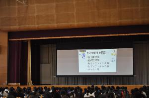 2月5日(木曜日)、入学説明会が行われました。来年度入学する校区3小学校の6年生児童と保護者が参加しました。校舎見学後、1年生生徒による学校紹介と担当教員から中学校生活のきまりや部活動についての説明が行われました。