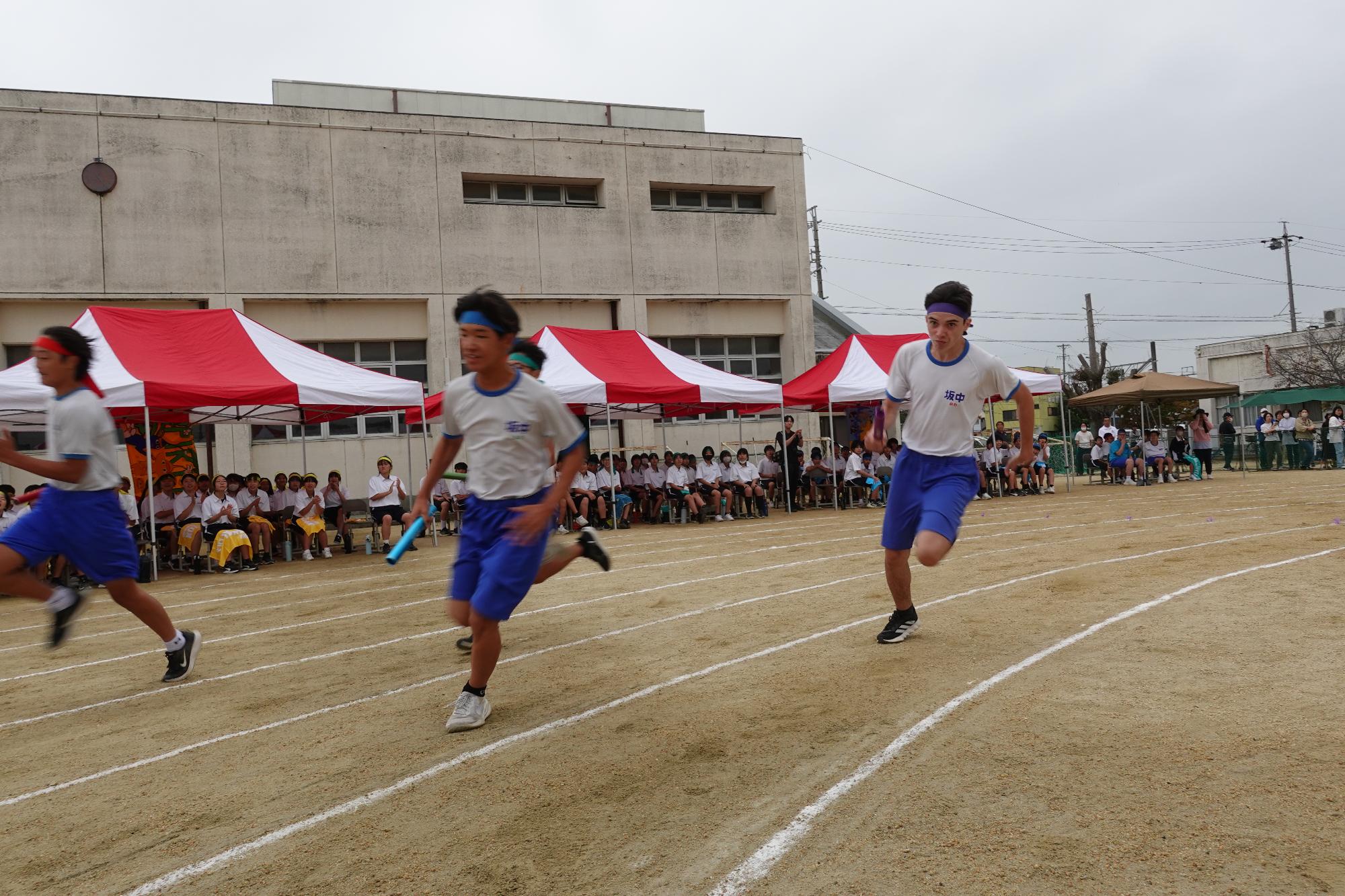 10月10日に、令和7年度小坂井中学校体育大会が開催されました。秋らしく涼しい天候ながら、生徒たちからは情熱の炎が燃え上がり、大熱戦が繰り広げられました。スローガン「らしくてイイじゃん」のもと、生徒一人一人の個性が集結し、坂中らしく、それぞれの学年・学級らしく、光り輝いていました。平日の開催でしたが、多くの御来賓や保護者の方々に御参観いただきました。ありがとうございました。