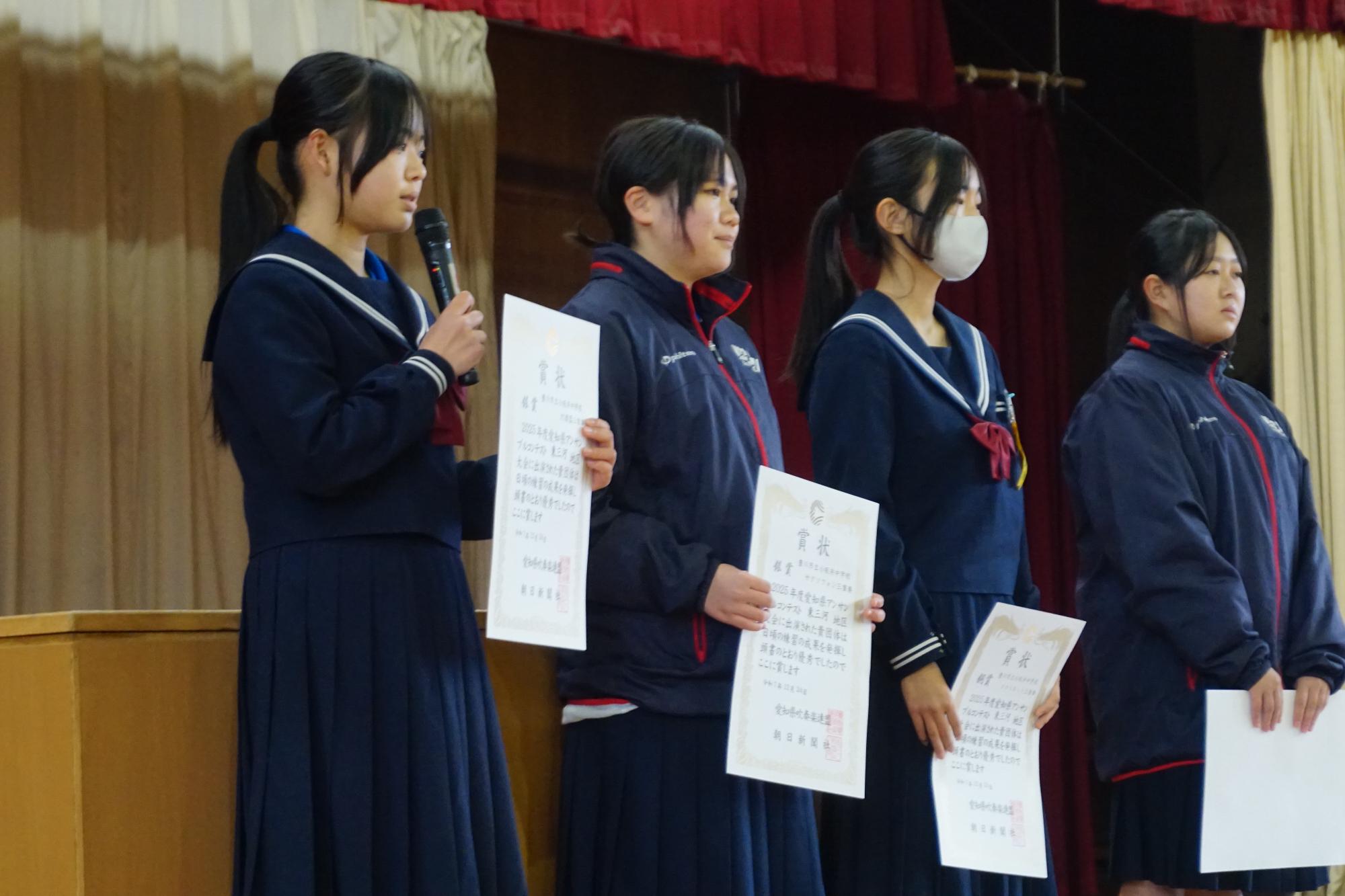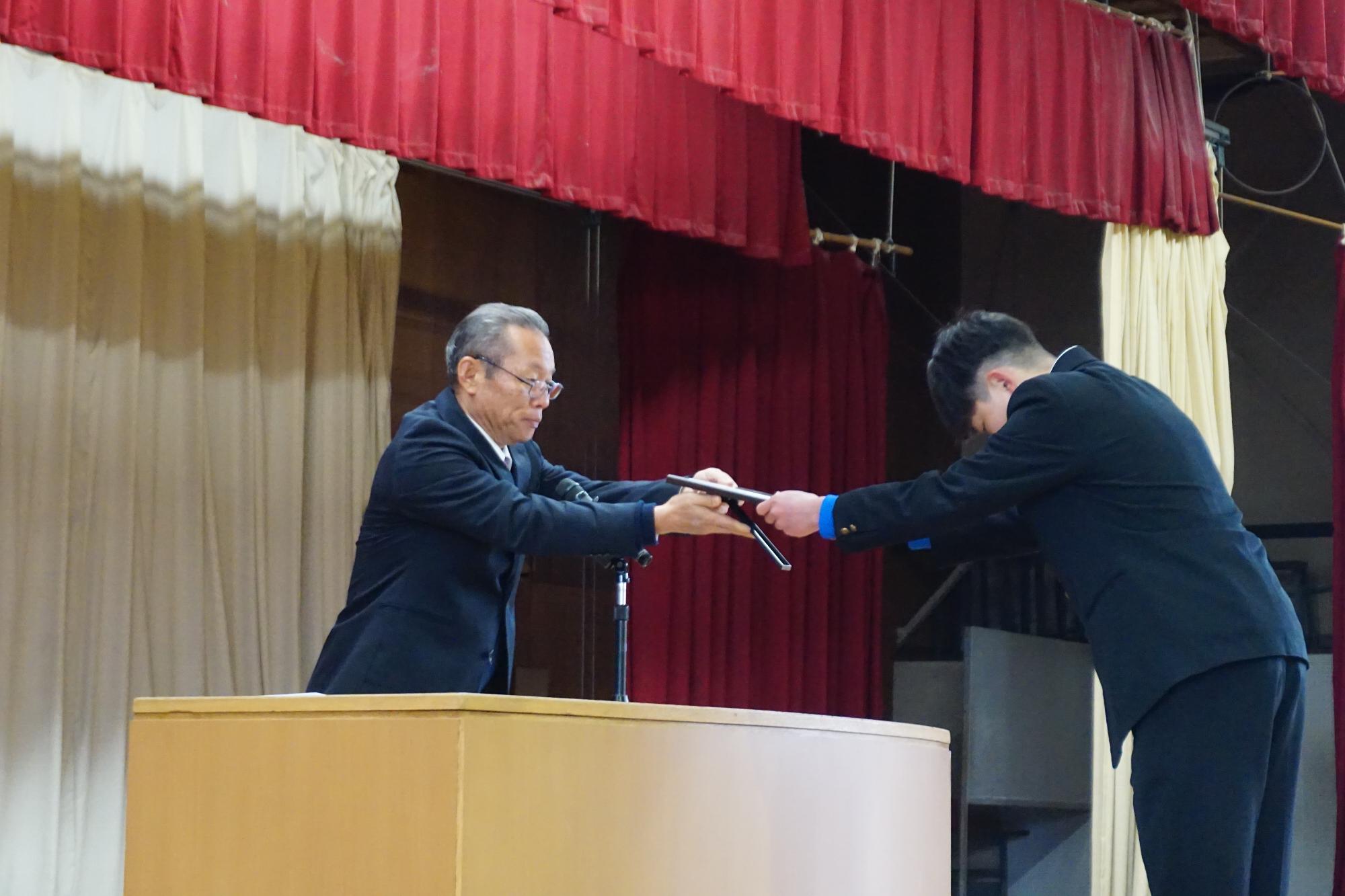 1月7日に3学期始業式が行われました。変わらぬ元気な姿を見ることができてうれしく思いました。はじめに、各学年の代表生徒による、3学期のめざす姿の発表がありました。新学年に向けての0学期ともいわれる3学期。来年度を見据えた目標と決意表明が堂々と述べられました。同じ仲間と同じクラスで過ごすことができるのもあとわずか。1日1日を大切にして、仲間との思い出をより深めてほしいなと思います。その後は校長先生のお話や表彰伝達、生活面に関するお話などがありました。今年は午(うま)年、想いが強ければ“すべて馬くいく”・・・みなさんの活躍を期待しています!