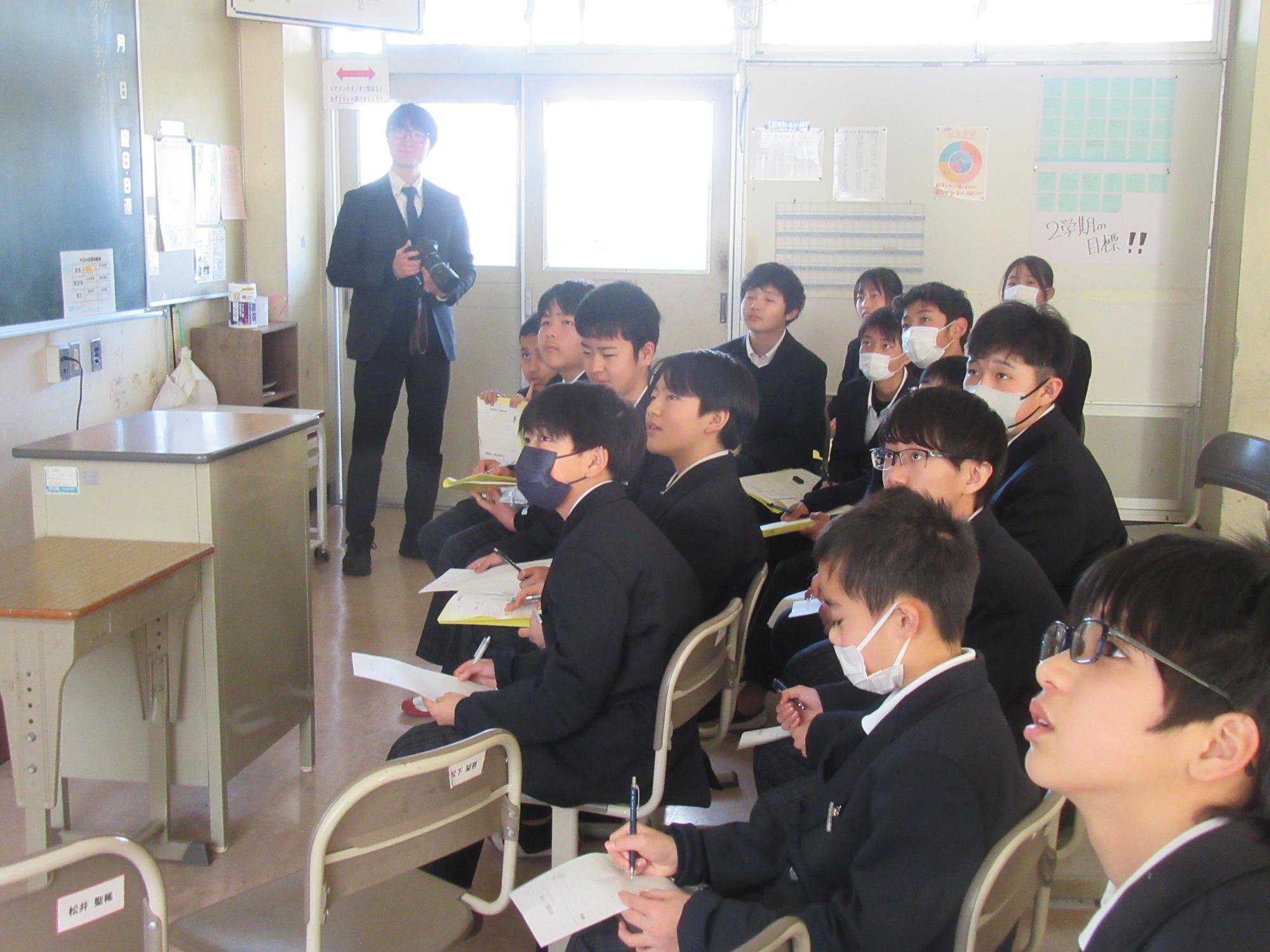 1月21日に1年生が職業講話を行いました。7つの職業について、その道で活躍されている方々より、貴重な話をしていただきました。興味や関心のある職業について、経験談や生き方を聞いて、働くことだけでなく、社会に出るまでに身につけるべきことや、「今」をどう過ごすのかを考えている様子でした。生成AIやネット検索では学ぶことができない講師の方の「生きた」言葉一つ一つが子どもたちにはとても響いていました。
