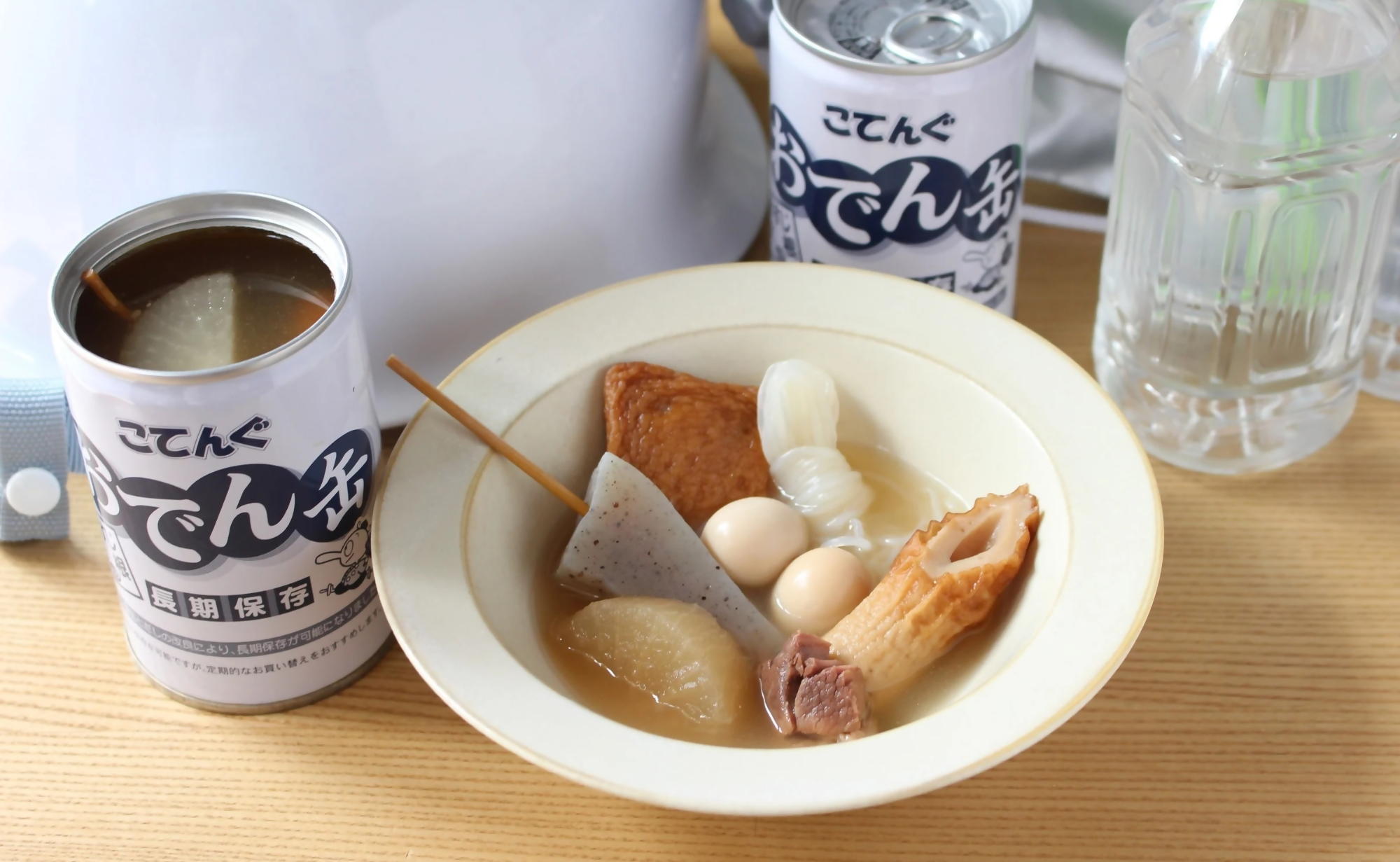 天狗缶詰株式会社は、全国の学校給食のほか、外食産業・レストランや大手食品メーカー・コンビニ向けに業務用商品を提供する老舗食品メーカーです。大量調理の給食や飲食店を支える大型業務用缶詰・食品が主力ですが、一般消費者向け製品として、返礼品「こてんぐ おでん缶」を製造しています。