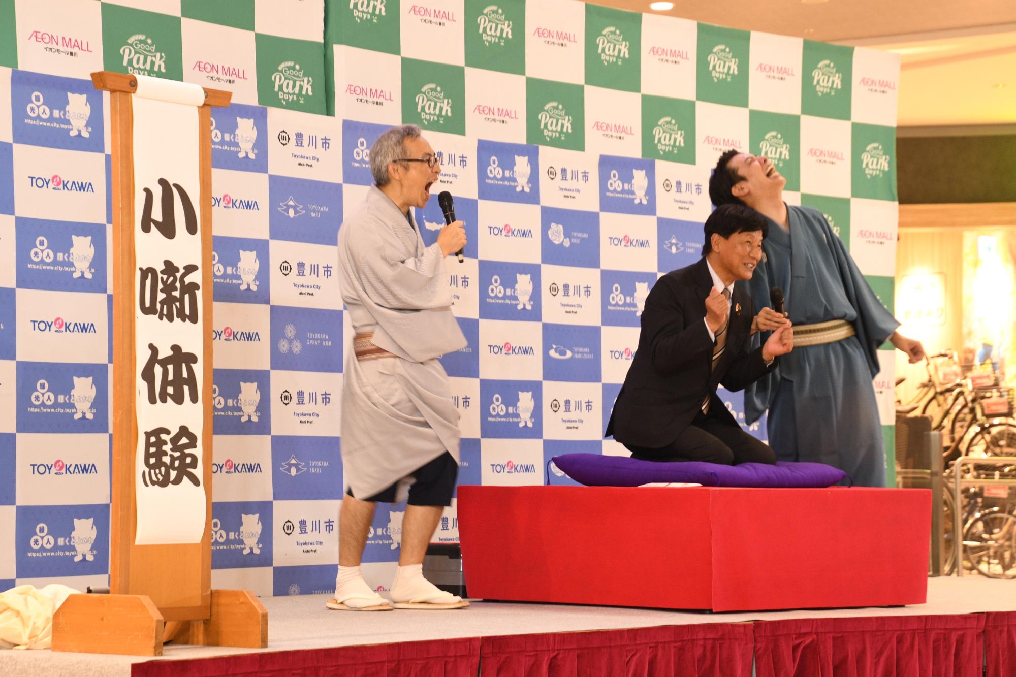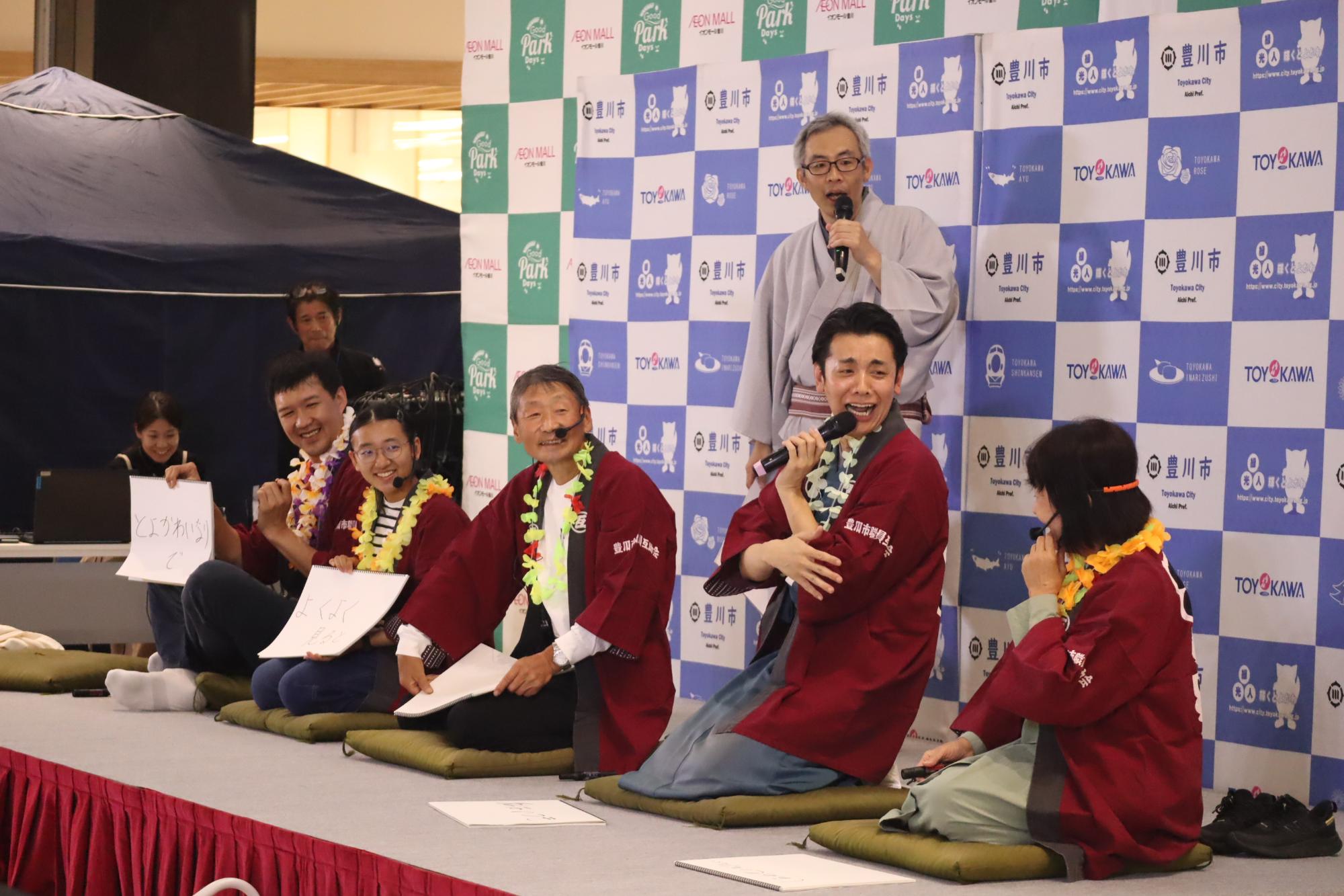 豊川市の移住定住サイト「CITY AND PEOPLE~ひとのわ、とよかわ。~」で紹介させていただいている方々にご登壇いただき、豊川市の魅力をPRするイベントです。出演者によるパフォーマンスの披露に加え、トークショーを実施し、豊川市の魅力を語っていただきます。第2回目となる今回は、「笑い」をテーマに豊川市出身の落語家・三遊亭 萬橘さんと三遊亭 鳳月さんにご出演していただき、落語の所作や小噺、大喜利を披露していただきます。