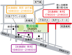 豊川公園内(しばふ広場、OKAKENアスリートフィールド(陸上競技場)及びその周辺)
