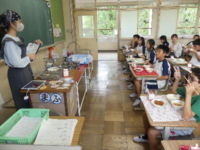 栄養教諭による栄養指導 更新日:2025年10月21日 ページID : 26127 栄養教諭の方に来ていただき、給食の時間に、朝食の大切さや栄養素など食にかかわるお話をしていただきました。自分たちの体をつくっている食事の大切や、食材そのもの、そして作ってくれる方への感謝の気持ちがふくらんでいくといいです。 給食の様子と合わせて、少し紹介します。 3.4組 3.4組 5年 5年 3年 3年 3年