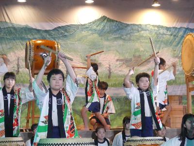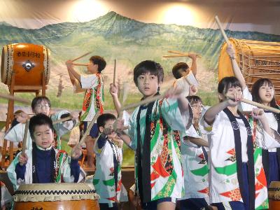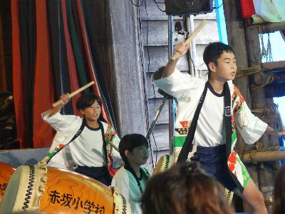 26日は雨が心配されましたが、赤坂の舞台で6年生による和太鼓の発表ができました。演目は「ひだまり」です。