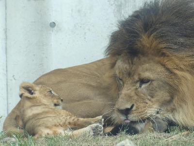 のんほいパークのライオンの親子