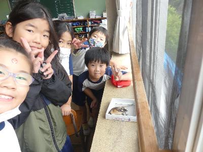 10/31のことです。北校舎3階の活動室のベランダに、モズの死がいが落ちていました。きっと、ガラスにぶつかってしまったのでしょう。子どもたちは、「スズメが落ちている!」と報告に来てくれました。
