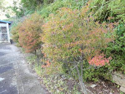 赤坂小学校のドウダンツツジが色づきはじめました。「どうだん発表会」の時期に色づくドウダンツツジですね。