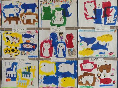 2年生の図工作品 更新日:2025年11月14日 ページID : 26606 2年生の図工の作品を紹介します。「たくさんうつそう わたしの形」というタイトルです。同じ形をうまく使って楽しく、カラフルな作品が出来上がりました。見ているだけで、気持ちがうきうきしてきますね。 2年生図工作品1 2年生図工作品2 2年生図工作品3 2年生図工作品4