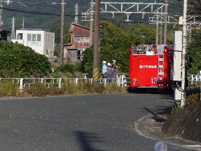11月7日、登校時間帯のことです。山陰川の中で、シカがもがいていました。その際にお世話になった消防署の職員の方もおみえでした。(残念ながら、シカは助からなかったそうです・・・)