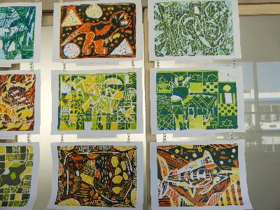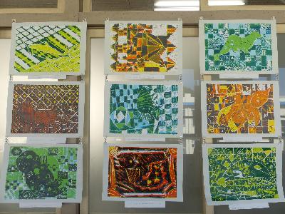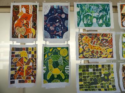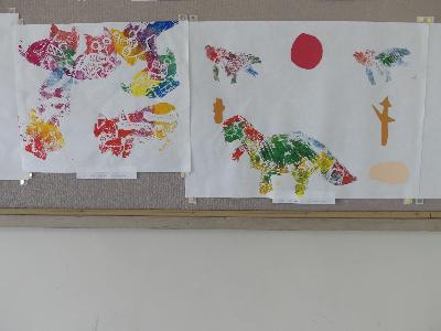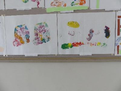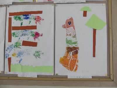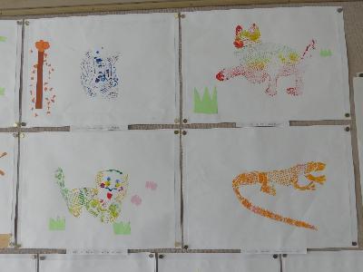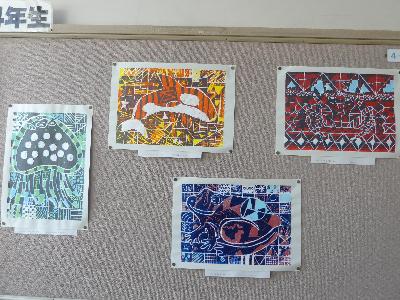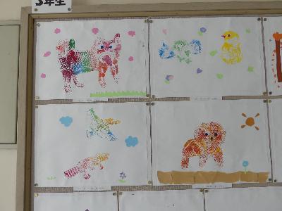 3年生は、コラグラフというもので、でこぼこを写し取り、動物を表現しています。