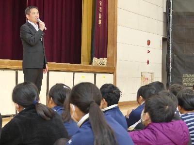 静かに体育館に入場し、落ち着いた雰囲気の中で2学期の終業式が始まりました。いい姿ですね。嬉しくなりました。
