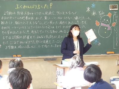 終業式の後の学級の時間の様子を紹介します。みんな、いい顔をしていました。楽しく、穏やかな冬休みを過ごしてくださいね。
