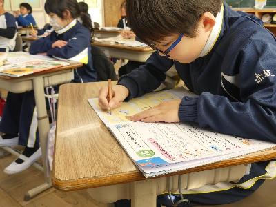 3-2は、書写に取り組んでいました。毛筆や硬筆に真剣に取り組み、字がどんどん上手になっていくといいですね。