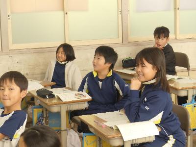 5年生は、AETの先生との授業。楽しく頑張っています。