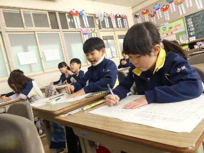1年生は、書き方の勉強をしていました。丁寧に取り組めていますね。
