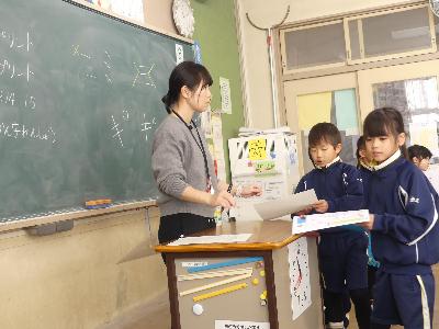 5年生の英語の授業です。「日本のどこに行きたいですか?」「私は〇〇に行きたいです」という会話をしています。(もちろん、英語で)出来たらシールを貼っていきます。お互い、英語でよいコミュニケーションをしていきましょう。
