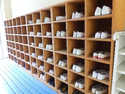 2年生は校庭で体育でしょうか?下駄箱の中の上履きは、丁寧に整頓されています。良い習慣ができていますね。