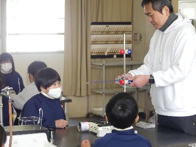 4年生が、理科でものの温まり方の勉強をしていました。金属はどのように温まるのかを予想し、実際にコンロを使って実験をします。「真ん中に火を当てると、両方に、同じように熱が・・・」と、自分の考えを伝えている子もいます。なるほど!