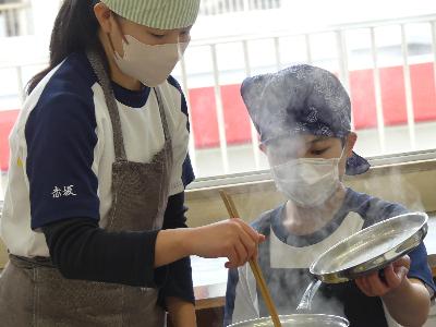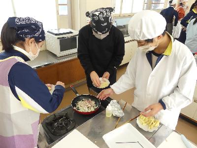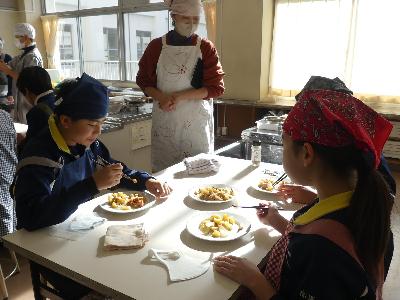 6年生調理実習 更新日:2026年02月05日 ページID : 27715 6年生が調理実習でジャーマンポテトづくりに取り組みました。ジャガイモをカットする大きさや味付けなどを各班で考えたようです。 炒め始めると、とてもいい匂いが教室の外まで漂ってきます。お皿にとりわけ、みんなで楽しく会食ができました。ぜひ、家でも作ってみてください。 6-1 6-1 6-1 6-1 6-1 6-2 6-2 6-2 6-2 6-2