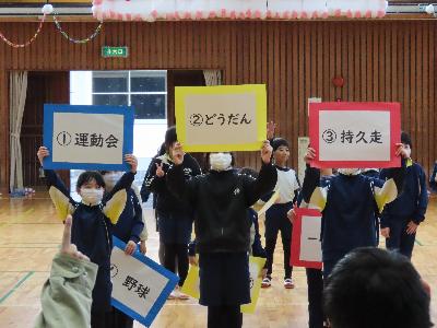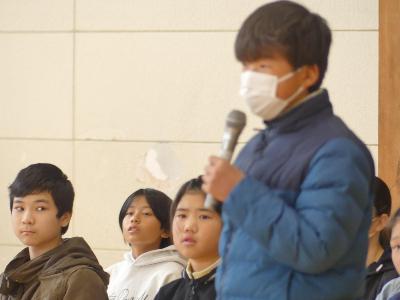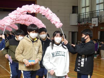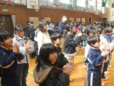 6年生を送る会 その2 更新日:2026年03月12日 ページID : 28438 6年生を送る会の様子を紹介します。その2、最終回です。 思い出のビデオ 思い出のビデオ 全校合唱 全校合唱 6年生からの言葉 終わりの言葉 6年生退場 6年生退場 4年生は、学級閉鎖の影響で準備が整わず、次の日、6年生に思いを伝える場を設けました。 4年生 4年生
