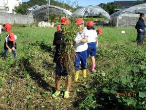 千両小学校では、全校たてわり班でのサツマイモ栽培活動に取り組んでいます。