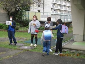 今週の月曜日から、PTA活動として「にこにこあいさつプロジェクト」が開催されています。