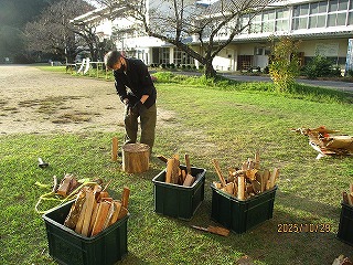 今、千両小では夕方になると屈強な教師たちが巻き割りに勤しんでおります。