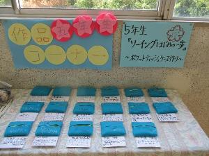 5年生は、授業で作ったティッシュケースが並んでいます。丁寧に縫っているので、きっと長い間使うことができるでしょう。