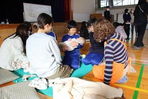 豊川市保健センターの保健師さん、地域の主任児童委員さん、民生委員さんなどのご協力を受け、赤ちゃんとのふれあい活動を行いました。
