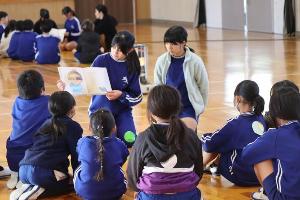 たてわり班ごとに分かれて、6年生が選んだ人権にかかわる絵本の読み聞かせです。