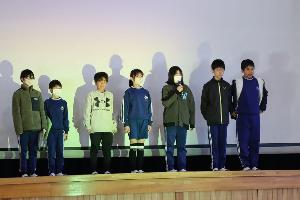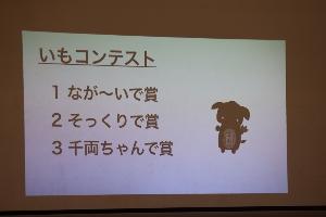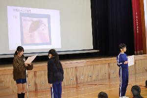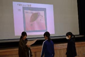 たてわり班で収穫した千両いもから、さわやかグリーン委員が厳選な審査を行い決定した「ながーいで賞」「そっくりで賞」「せんりょうちゃんで賞」の3部門の入賞班に表彰がありました。