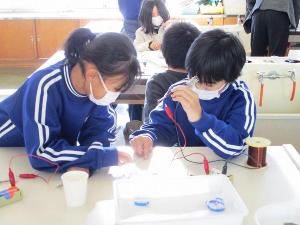 5年生の理科では、銅線やくぎを使って電磁石を作りました。