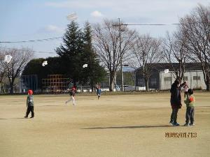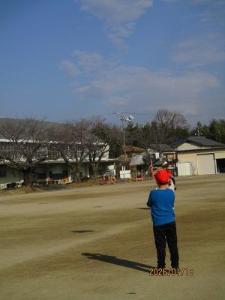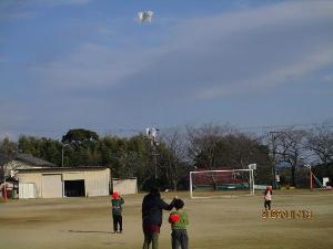 運動場を一生懸命に走って、凧はぐんぐんと空高く上がっていきました。