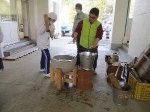 地域の方を講師としてお招きし、おいしいもちのつき方を教えていただきました。