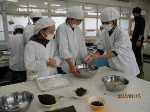 ついたもちは、家庭科室で大福やきなこもちなどに調理して、おいしくいただきました。