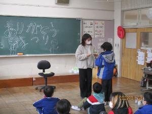 2組から5組の皆さんが、来週初めから産休に入る先生に感謝の気持ちを込めて、ありがとうまつりを開催しました。