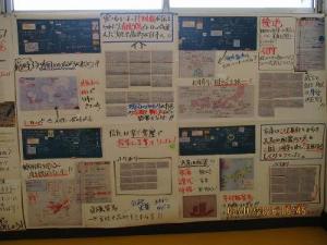 6年生教室前の廊下には、日々の授業の中で学んだ内容が掲示されています。