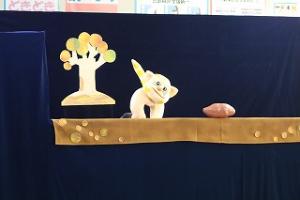 千両小学校区青少年健全育成推進協議会事業として、1から3年生が人形劇を観劇しました。劇のタイトルは「ねずみとおいも」です。
