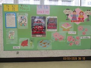 校内のあちらこちらにも、ひな祭りに関する掲示があります。春ですね。