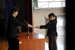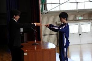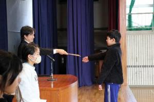 習字や美術の優秀作品や、短なわ大会入賞などの表彰がありました。