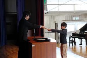 1年生から5年生の千両っ子に修了証が渡されました。4月からは1つ上の学年に進級します。