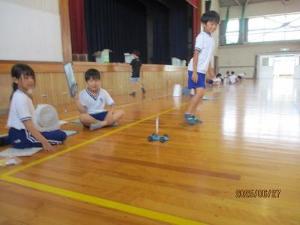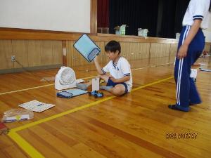 3年生の理科では、風のはたらきについて体育館で実験をしました。