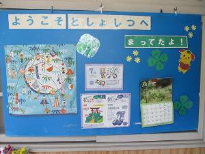 図書室や日本語教室の掲示も、7月バージョンとなりました。