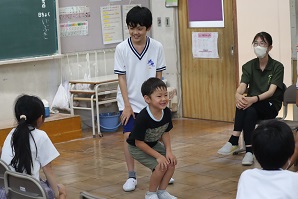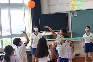 風船バレーや、ジェスチャーゲーム、友達の背中に、ひらがなの文字を指でなぞって、伝達していくゲームなど、それぞれの班で工夫を凝らした遊びを楽しみました。