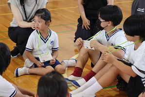 ちぎりのヒーロー委員会が作ってくれた誕生日カードのプレゼントがあり、その後はたてわり班での「進化じゃんけん」で楽しみました。