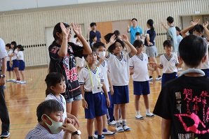 6年生の子とじゃんけんをして、勝てば「ひよこ」から「うさぎ」、「うさぎ」から「へび」といったように進化をして、最後に「人間」になったゴールです。